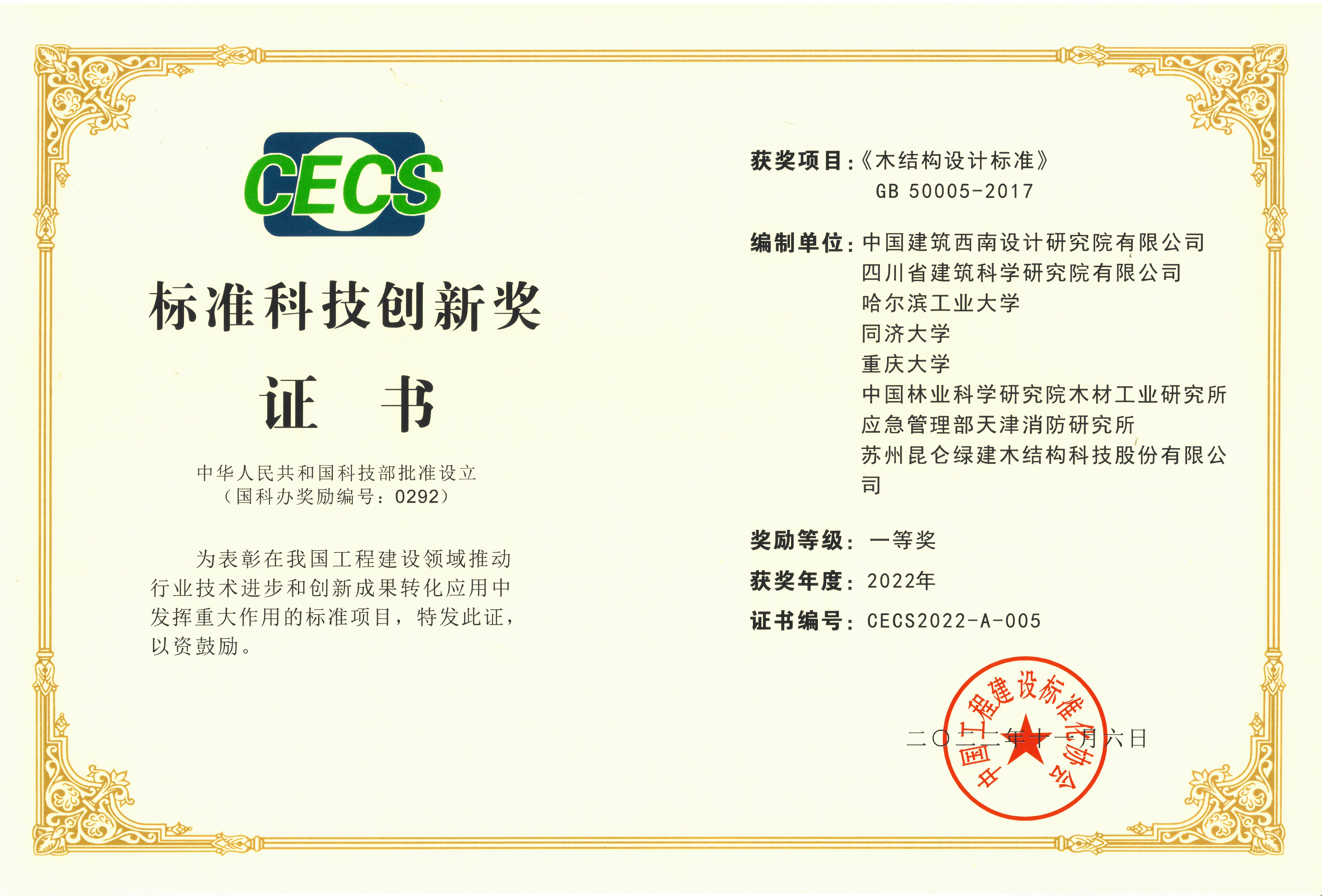 2022年标准科技创新奖一等奖-木结构设计标准