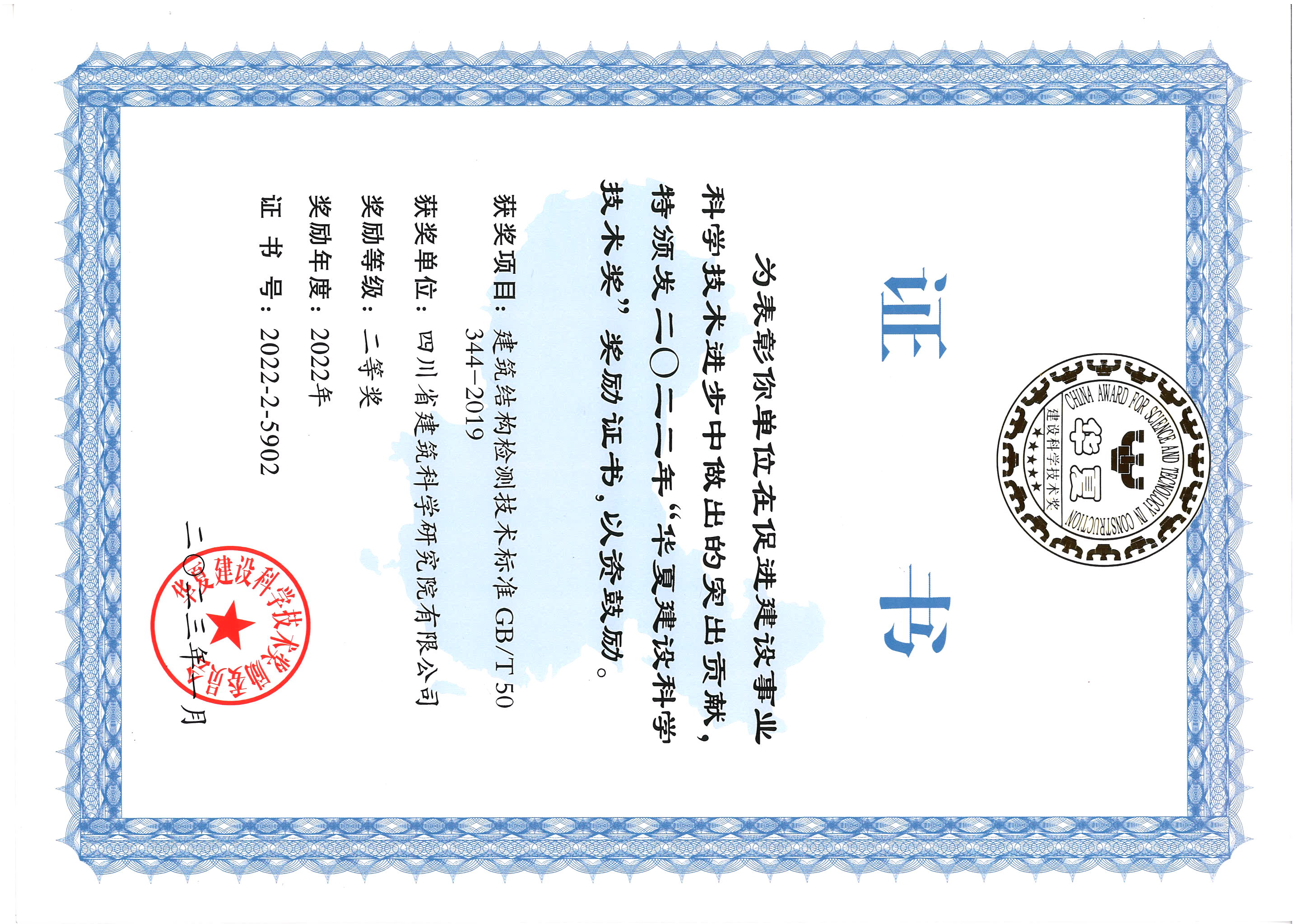 2022年华夏建设科学技术奖二等奖-建筑结构检测技术标准