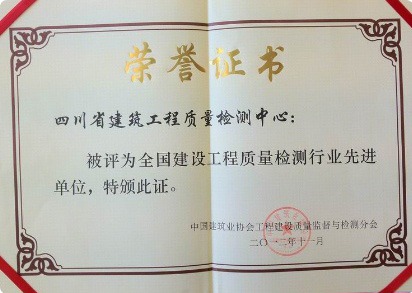 全国建设工程质量检测行业先进单位