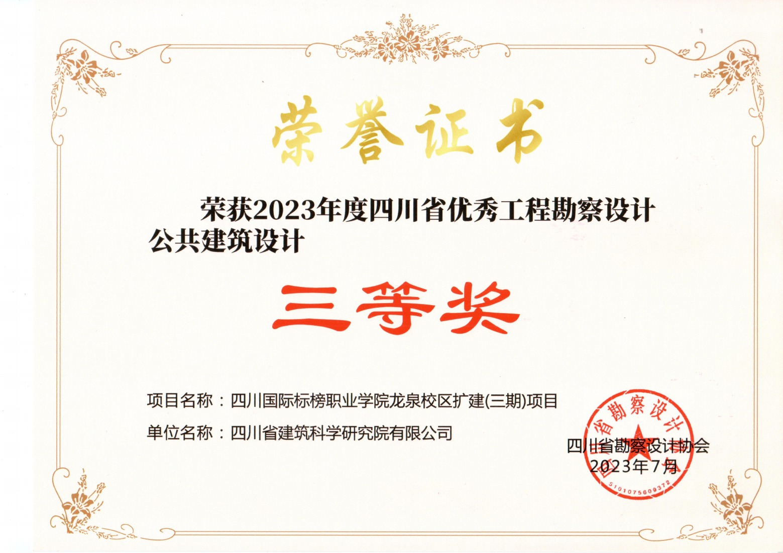 2023年四川省优秀工程勘察设计 公共建筑设计三等奖-四川国际标榜职业学院龙泉校区扩建(三期)项目