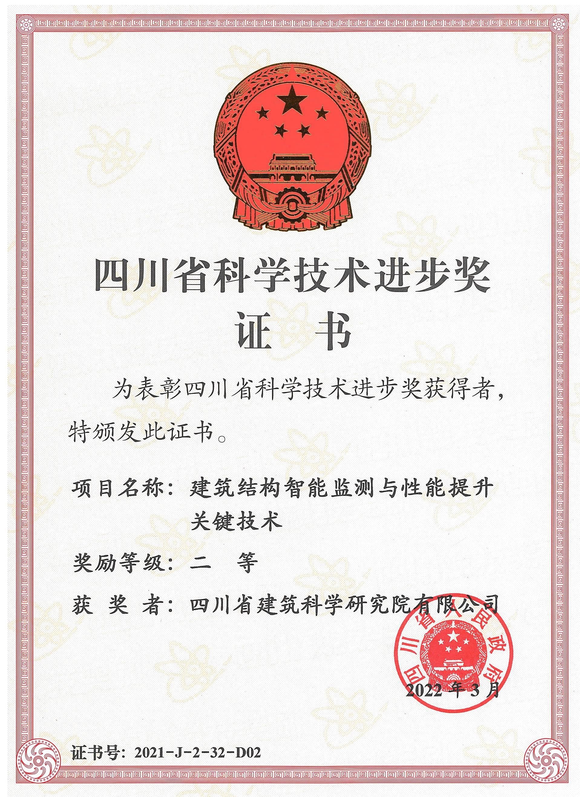 2021年度四川省科学技术进步奖二等奖-建筑结构智能监测与性能提升关键技术
