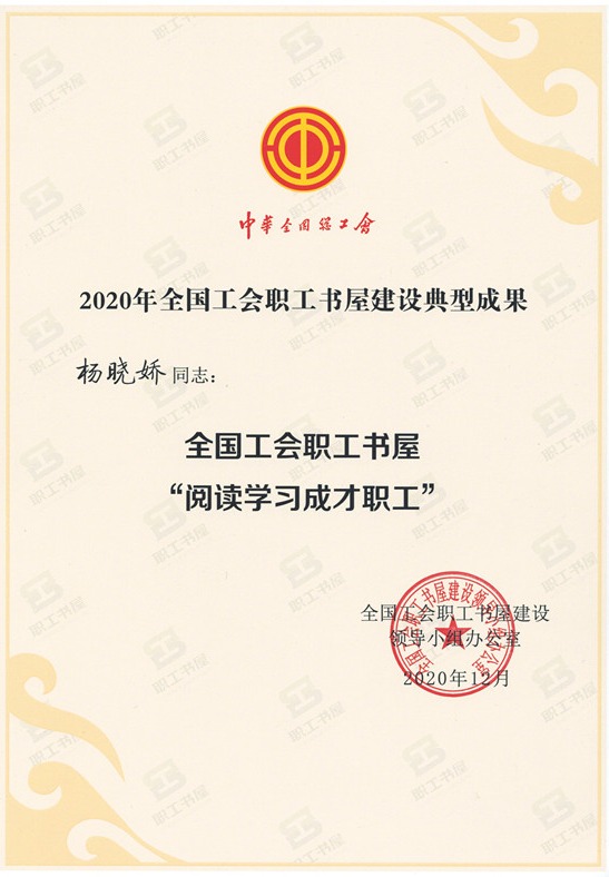 建科院杨晓娇同志荣获全国工会“阅读学习成才职工” 荣誉称号